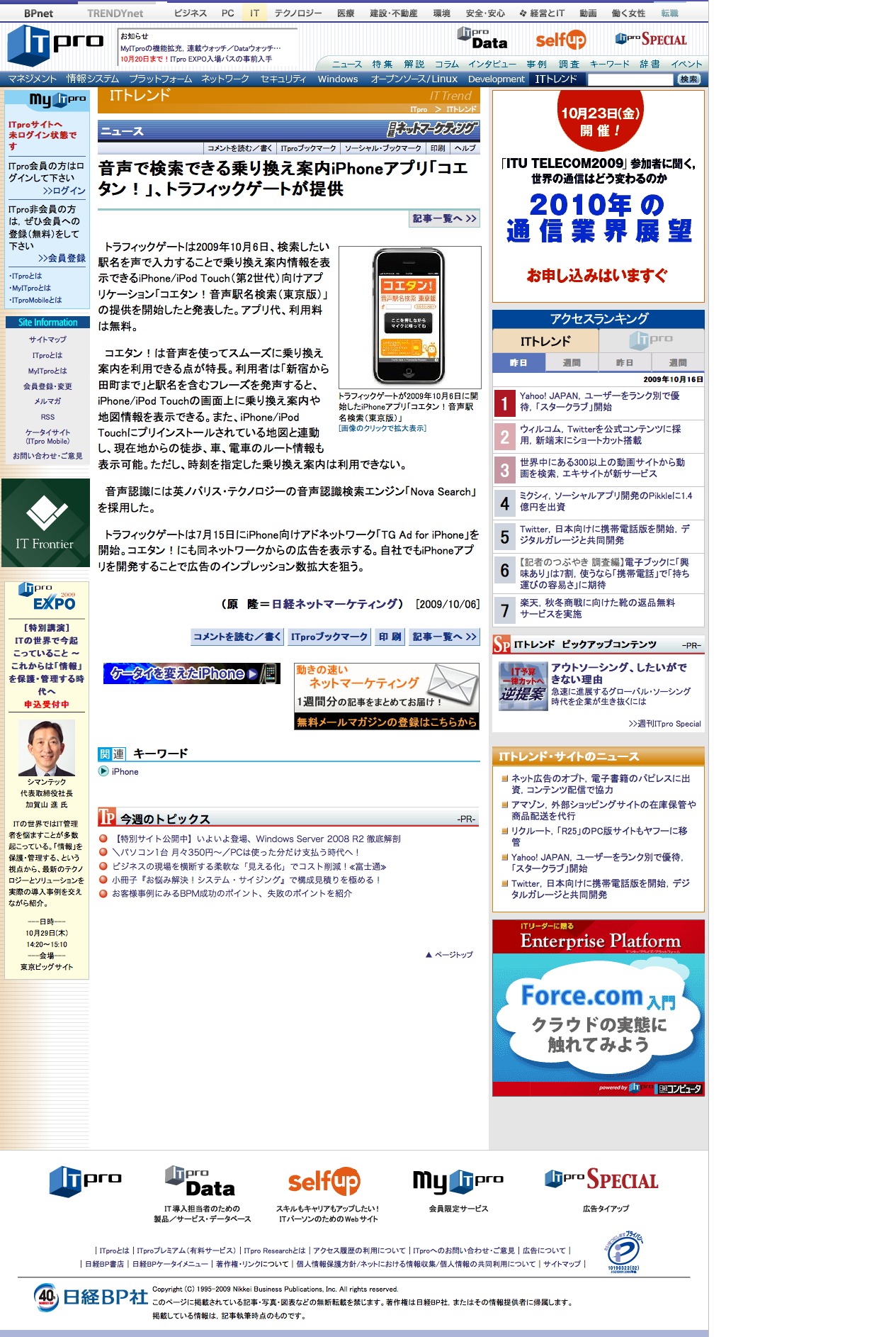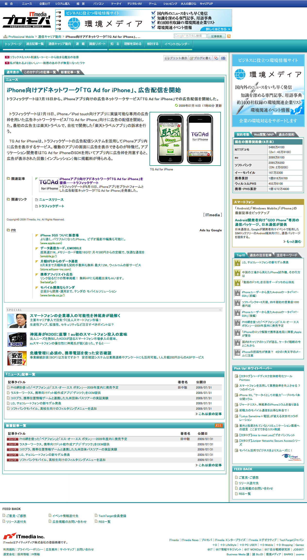 TG Ad for iPhone(2009年6月15日リリース)Traffic Gate在籍中 「TG Ad for iPhone」は、アップル社のApp Storeで提供されているアプリケーション上に、トラフィックゲートの広告配信システムを活用して広告を表示するサービスです。 今後国内で成長が見込まれるスマートフォン市場において、広告主はリッチメディアな優良アプリケーションのアドネットワークに広告出稿が可能になり、多くのiPhone/iPod Touch等のユーザーにリーチできるようになります。
