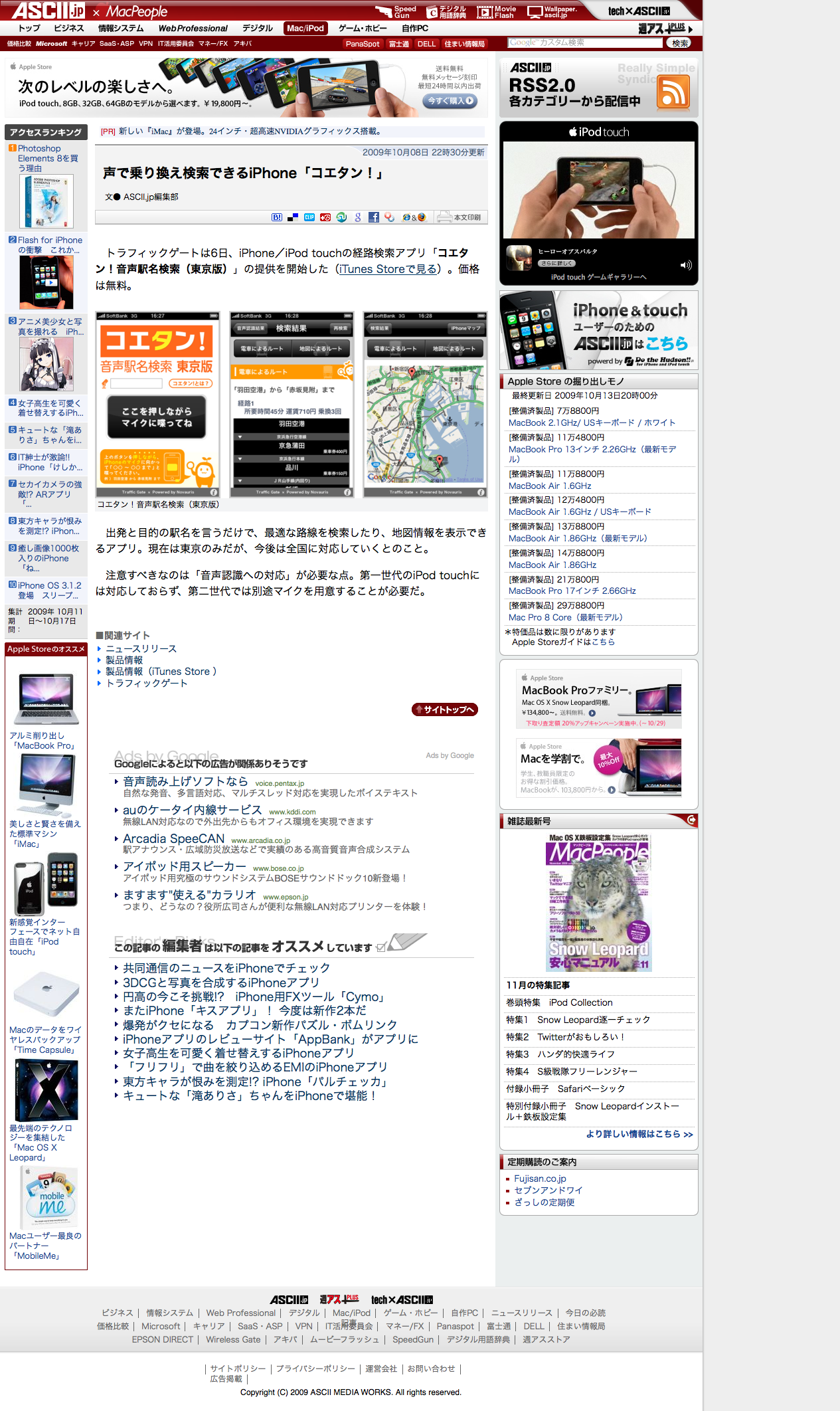 コエタン!音声駅名検索(東京版)(2009年10月6日リリース)Traffic Gate在籍中 「コエタン!」は、Novauris が提供する音声認識検索エンジン「Nova Search」を採用した乗り換え案内のアプリケーションです。検索したいルートの東京の駅名を「○○か ら○○まで」と iPhone/iPod Touch に向かって発声すると、アプリケーションがその音声を認識し、iPhone/iPod Touch 上に駅のルート情報(乗り換え案内)や地図情報が表 示されます。また、iPhone/iPodTouchにプリインストールされているマップと連動して、現在地からの徒歩、車、電車のルート情報も表示可能です。