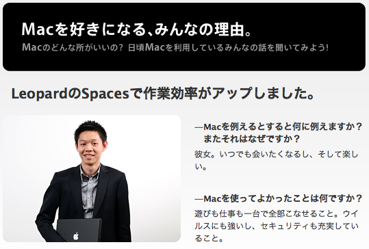 今年の1月のお話になりますが、アップルのサイトでMacユーザーとして取り上げられました!写真撮影は大変ですね。撮られる際は何度も笑って下さいと言われました。。。