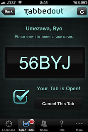 お店の定員に認証画面を見せると”tab”が開かれる。
