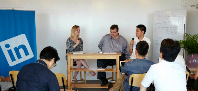 イベントはLinkedIn Japan株式会社日本法人代表代理のキャサリン・ポーターさんとLinkedIn創業者Reid Hoffmanさんのパネルで始まり、通訳を務めさせて頂きました。