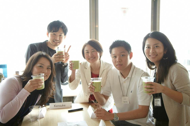 その後、グループに別れてグループディスカッションのモデレーターを務めさせて頂きました。グループは左からLinkedIn Japanの長谷川玲さん、nanapiの古川健介さん、ロフトワークの林 千晶さん、Hub Tokyoの槌谷詩野さん。グループでジュースを作る課題で、「Green Magic」と題するジュースを作りました。その後の課題ではnanapi社の強みであったり海外戦略について議論しまして、今後nanapi社は外人を積極的に採用する結論に至りました。w