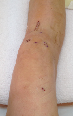 今日ガーゼを取って消毒されている時に撮りましたが、比較的に傷後も少なかったです。さすがにホッチキスの針のような物で止められてたのを見たときはショックでしたが…T.T 10日後程に外すので…また痛い予感が…