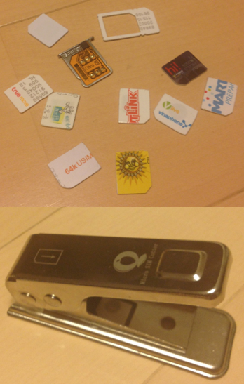 iPhoneをjail breakせずに現地のSIMが使えるGevey社のiPhone SIMゲタとMicro SIMカッター!これで現地の番号でやりとりができるので、ローミング代が節約できます。