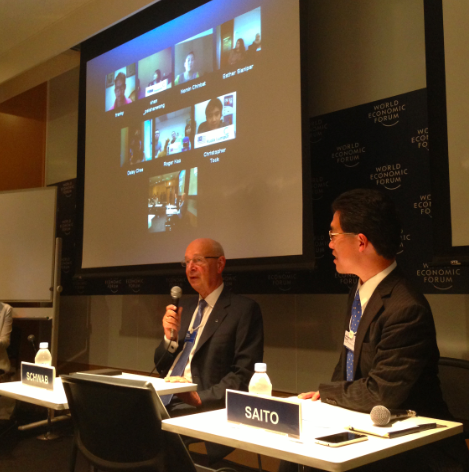 今年も安倍晋三内閣総理大臣を始め、政治家、大手企業の経営者、起業家や各国の大使等豪華な面々が参加。今回は新しい試みとして、一部のセッションがニコニコ生放送で放映されました。残念ながら最初のセッションから参加することはできませんでしたが、シュワブ氏が日本及び世界各国のグローバルシェイパーズコミュニティとSkypeで中継したセッションではシュワブ氏の考えるワークライフバランスや、リーダーに求められる4つの重要な要素など素晴らしいお話を伺うことができました。中でも4つの要素、”seoul, heart, brains, nerves”は私自身にとっても欠かせない行動指標であり、進むべき方向性を見極めながら情熱をもって頑張ろうと勇気づけられました。75歳のシュワブ氏は”若さや歳”といったワードを常に強調していて、”You have to shape the world. It’s your world.”と20代のグローバルシェイパーズに熱く語りかけていました。彼自身にも、予期せずしてフランスの大統領と電話が通じて思わず切ってしまったような若い時代があったそうです。