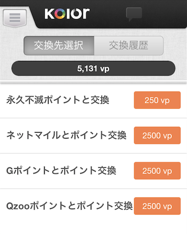 毎日アプリを立ち上げてミッションを確認するだけでもポイント(Kolor内通称Value Point:VP)がもらえます。