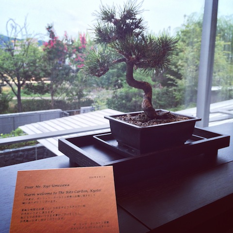 部屋にはウェルカムカードと盆栽があり、癒されます