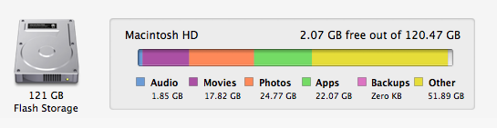 MacBook Airの購入はこれで7台目、いつもは一番安いモデルにカスタマイズせず購入してましたが、今回はHard Diskの容量が256GBでRAMもアップグレードしました。今まで使ってたMacBook Airだと、上記のようにHard Diskの容量ギリギリ使ってたので、何度もHard Diskがいっぱいですと警告がでてました。キャッシュを消したり、ファイルを整理したり色々なアプリを使って整理したのですが、限界でした。RAMを追加したので色々なアプリを同時に開いても以前あったモサモサ感が解消しました。古いマシンからのデータ移行はThunderboltで今回は手動でコピーしたので、キャッシュとかも全てリセットできたのでコンピューターが快適です。