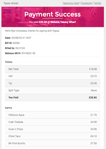 先月のロンドン出張時にイギリスのスタートアップが提供しているFlypayと遭遇して、早速利用してみました!レストランなど、支払いを行う際、店員を呼ばずにスマホで決済して会計を済ませるスマートなサービスです。
