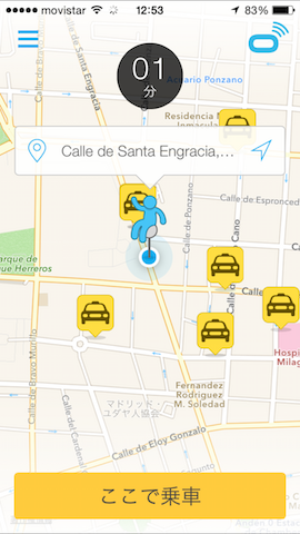 日本で使っているアプリはそのままマドリッドでも利用可能です。自動的に位置情報を検出して、マドリッドにいることを検出します。インターフェースも日本語のままで、何も設定変更せずにタクシーを呼ぶ事が可能な便利アプリです。是非ご活用下さい!