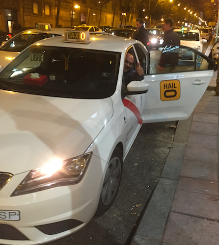 HAILOでタクシーを呼ぶと、素敵なドライバーさんが瞬時に迎えに来てくれました。マドリッドではIberia航空のマイルが貯まるなど、様々なマーケティング試作が行われていて日本に応用できる部分などあり、大変勉強になりました。