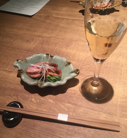 前々菜:国籍にこだわらず、素材の良さが味わえるアミューズ。この日は鴨でした!