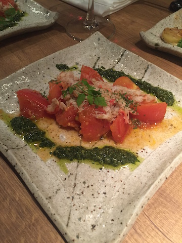 海鮮焼(他も選択可能):ズワイ蟹と焼きトマトジェノベーゼソース(上記写真)
