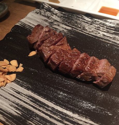 もちろん美味しいステーキ!他も選択可能ですが熟成赤身肉ステーキ(黒毛和牛の赤身肉を専用の熟成庫で40日間ドライエイジング)を選定。ソースや大根おろしとも食べれるので、色々な味わい方ができて美味しい!あと、最後にガーリックライス(高温の鉄板で、パラパラ仕上げ)も絶品ですが写真を撮り忘れました…涙 極みだし汁(カツオとアゴでとった上品な出汁)や イタリアで修業した松尾氏が作るオリジナルジェラートも付きます。コストパフォーマンスも良く、美味しいワインが多数ありますのでオススメのお店です!