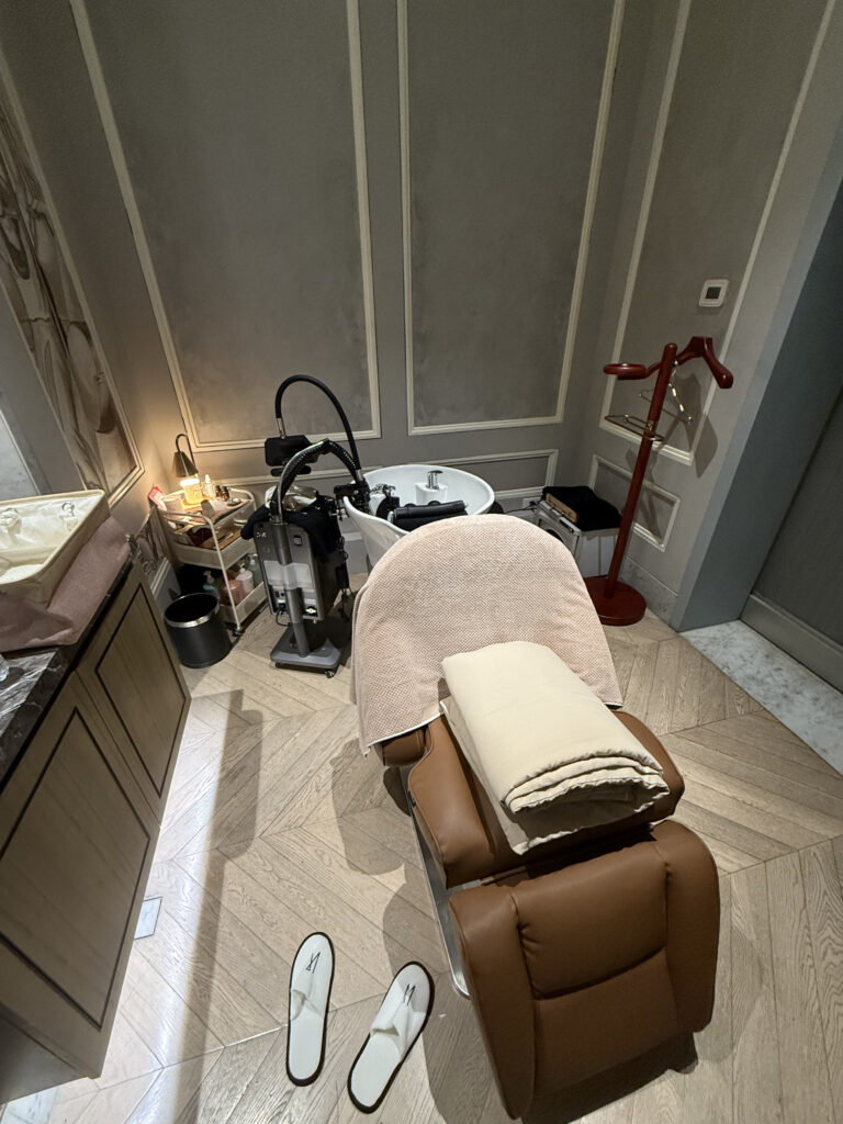 海外出張の移動疲れもあり、施術中はほぼ爆睡状態で、Waterfall Therapy も体感ゼロでした w。それでも、120分の集中ケアで頭皮も心も整い、深いリラックスを味わえました。料金は₱4,800(約10,000円)。この贅沢な時間と内容を考えると、非常にコストパフォーマンスが高いと感じます。個室での施術空間は落ち着いた照明と上質なインテリアで、外界を忘れてリラックスできるプライベートな空間です。